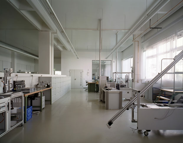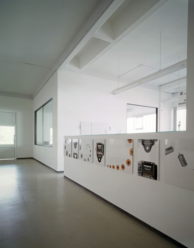 Trotz der hohen Sicherheitsanforderungen konnten wir dabei auf den Einbau von störenden Trennwänden weitestgehend verzichten. In einem abgetrennten Explosions-Sicherheitsraum werden Airbags und Sicherheitsgurt-Systeme geprüft. Großzügige Verglasungen ermöglichen die Ausnutzung des Tageslichts und Besuchern und Mitarbeitern freien Einblick in das Labor. In Zusammenarbeit mit Grafikern entstand ein farbiger Akzent: auf dünne Metallplatten gedruckte Bilder zeigen kleinste Teile aus der Produktion.